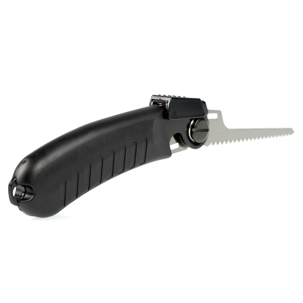 Two New Twin Blade Pocket Folding Saws from Topman!Featuring a sturdy and comfortable rubberised grip, these saws fold down to just 160mm in length - easy to fit in a pocket or tool belt, let alone your tool box. Open they measure 280mm overall with a 120mm blade and offer a very handy saw to have on hand for those odd jobs in the garden or work site. With the blade edges folded safely back in the handle, there is no risk of damage during storage or transit. The blade locking mechanism is simple and positive and features two positions for cutting versatility.This 'Black' model features two blades - a narrow "Keyhole" style blade and a general purpose "Woodworking" blade. Both are used in the traditional Japanese Pull-stroke, and will cut efficiently and quickly.An economical and useful tool to add to your kit.